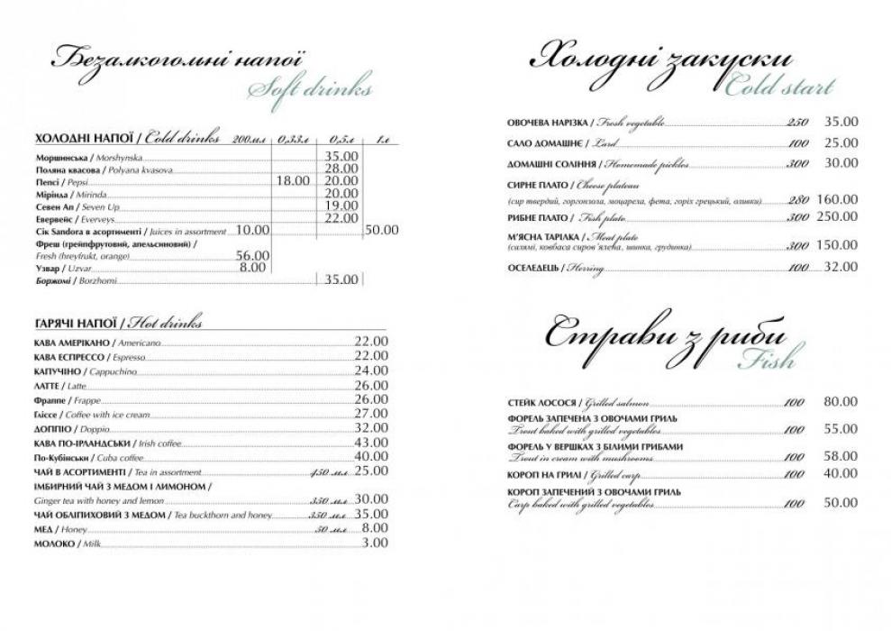 Цены: Ресторан "Betford" ("Бетфорд")