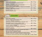 В меню ресторана предлагают салаты, первые, вторые блюда, блюда приготовленные на огне, гарниры, десерты и тому подобное.