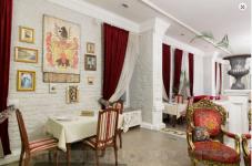 Екстер`єр: екстер`єр цього закладу не перевершений архітектори постаралися на славу! На тереторїї ресторану розставлені статуї ,фонтанчики а також арки. Сам фасад ресторану переносить тебе у XVIII століття а особливий підбір плей листа дозволяє повністю перенестися в ті часи.