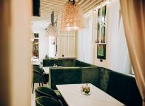 В ресторане два просторных светлых светлых зала в стиле Прованса. Помещение зала рассчитано принять до 100 гостей. VIP-зал для любителей отпраздновать особое событие подальше от лишних людей. Большая игровая комната для детских игр. Каждый день работает няня, которая может присмотреть за детьми пока родители проводят бизнес-встречу, участвуют в конференции или просто наслаждаются вкусными блюдами и компанией друг друга.