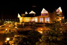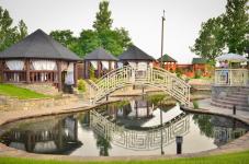 Вас ждет светлый, просторный ресторан с сруба на уютной территории за пределами города. Стильный интерьер с гармоничным сочетанием цветовой гаммы, просторные банкетные залы, детская комната и игровая площадка, летняя терраса с беседками и видом на озеро - все это настраивает Вас в уютный, незабываемый отдых.