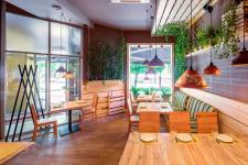 Вам запропонують розміститися в одній із зал, кожна з яких розрахована на 60 персон, або ж на літньому майданчику, де з комфортом може відпочивати до 35 гостей. Для сімейних свят у вузькому колі, так і для ділових обідів з бізнес-партнерами є окрема зала на 10 персон.
