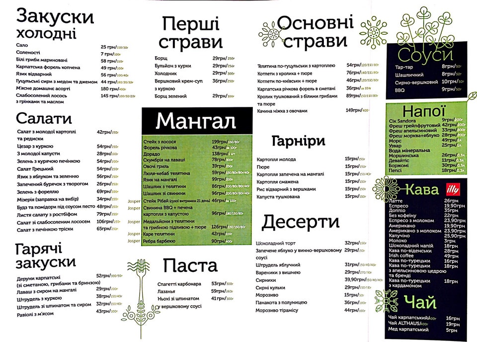 Меню, Ну дуже дешево, враховуючи, що це центр міста,