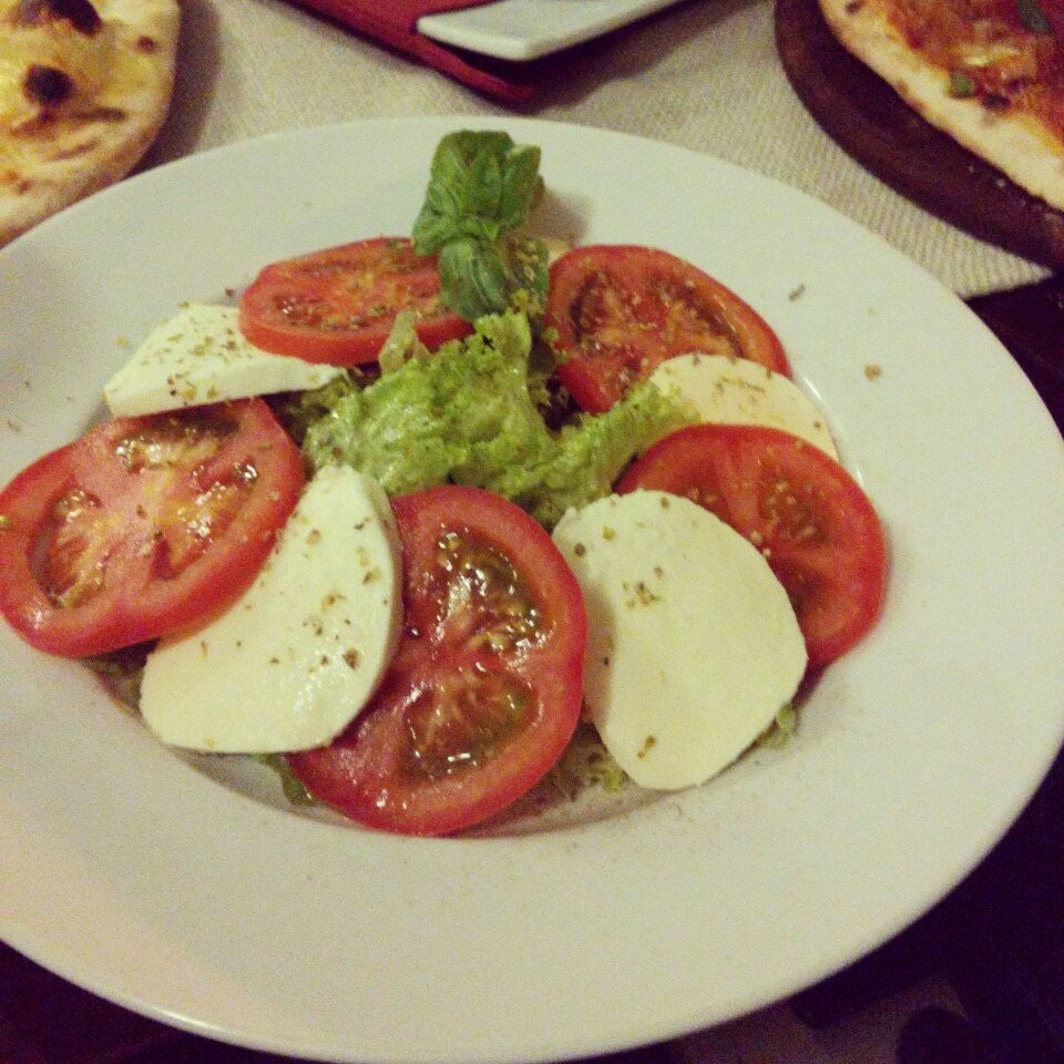 Смачна піцка) Добрий грецький салат та капрезе.
